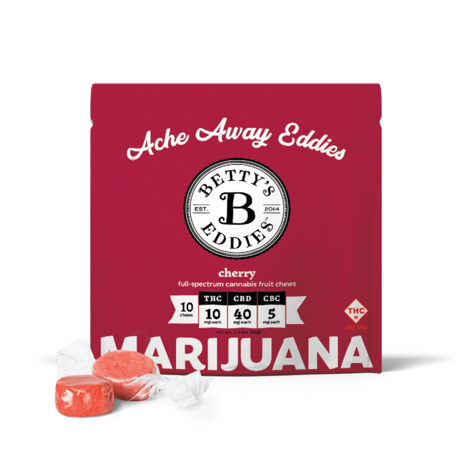 BETTY'S EDDIES - ACHE AWAY CHERRY TAFFY 100 MG